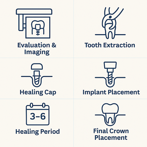 Both extraction and implant placement are done at once — saving time and reducing the need for multiple injections or healing phases.